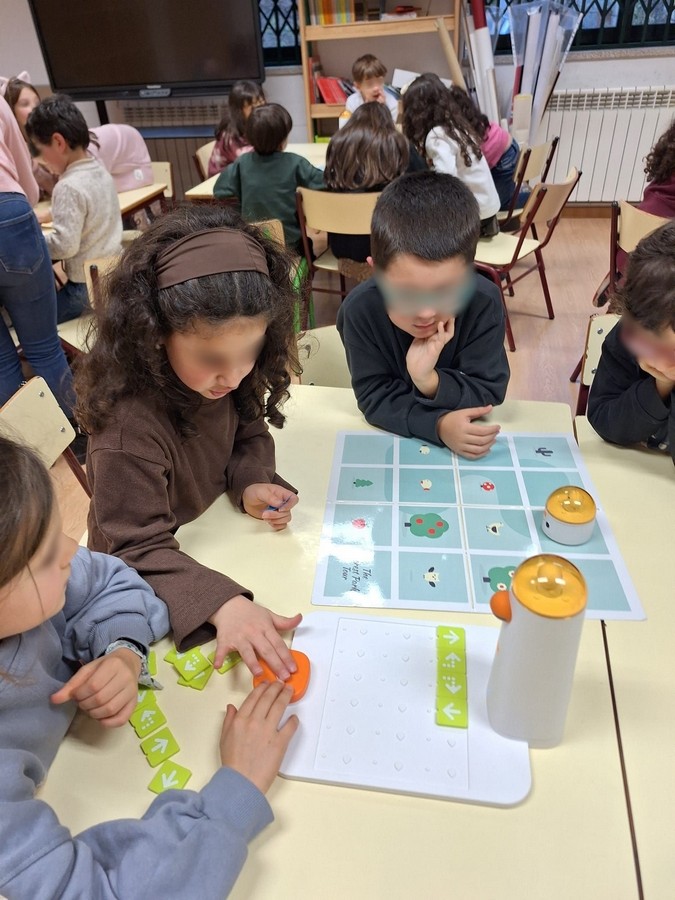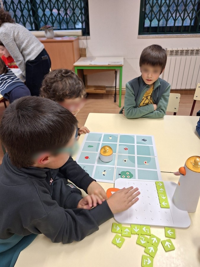Foi realizada uma primeira abordagem ao pensamento computacional, que foi explorado de forma simples e em estreita ligação com o uso de tecnologia, através de resoluções criativas propostas pelos alunos, valorizando o seu espírito de iniciativa e autonomia. Foram realizadas tarefas que permitiram aos alunos a definição do algoritmo (sequência de instruções passo a passo), a sua decomposição em partes mais simples, diminuindo a sua complexidade e também a definição de estratégias de teste e correção com os objetivos de encontrarem erros e melhorarem os processos, incentivando a sua perseverança na realização de tarefas e aumentando a sua autoconfiança.