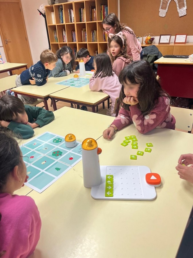 Os alunos manipularam os robôs mais simples Matatalab e Kubo criando programas básicos. O robô Matatalab permitiu essencialmente identificar números e reconhecer o seu significado como indicador de quantidade, medida, ordenação, identificação e localização. Este robô permitiu também desenvolver a orientação espacial e realizar percursos em que os alunos tiveram de identificar e descrever posições usando vocabulário próprio como “em frente” e “à esquerda”… O robô permitiu ainda aos alunos desenhar figuras geométricas.