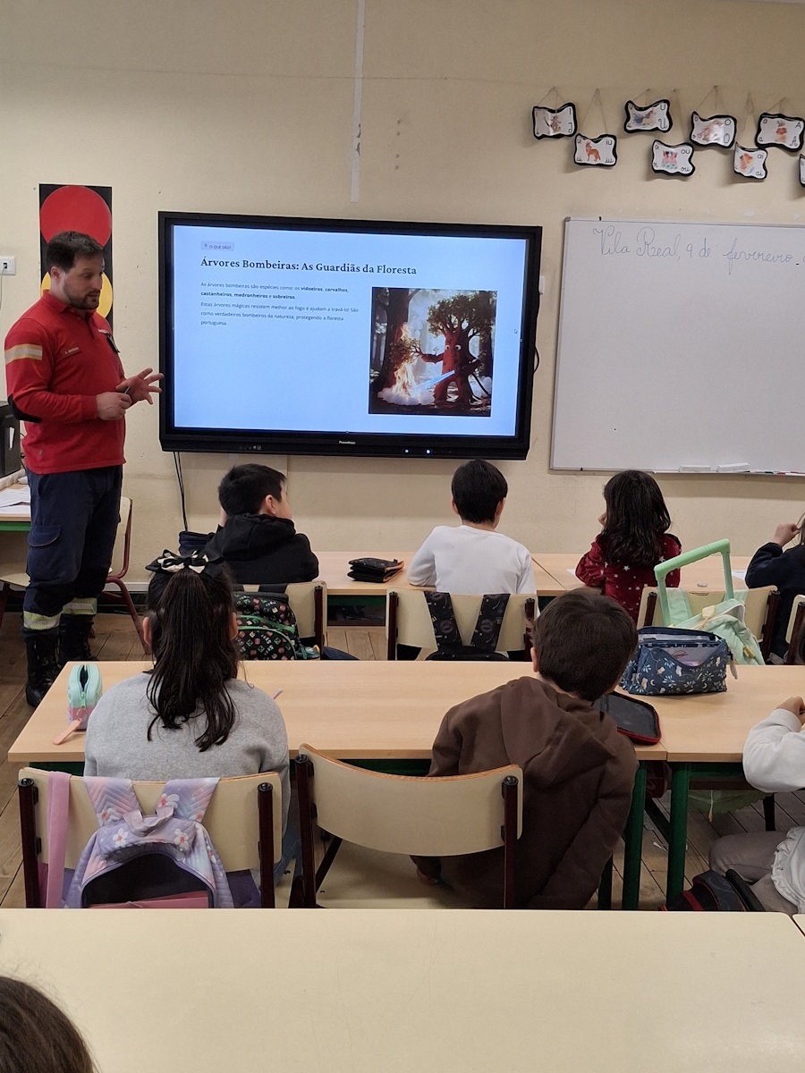 Na segunda feira, dia 9 de fevereiro, e no âmbito do Projeto Rato da Biblioteca “Bombeiros da Natureza”, da Fundação Vox Populi, a turma do 1º ano da EB nº6, Timpeira, recebeu na sua sala de aula o Bombeiro de 1ª, António Marques, para dar uma palestra sobre as árvores bombeiras. Durante a sessão, os alunos estiveram muito atentos, entusiasmados, colocaram questões e, sobretudo, descobriram que as árvores bombeiras, como os carvalhos e castanheiros, não ardem com facilidade e ajudam a travar os incêndios. Visualizaram imagens e viram como estas árvores protegem a floresta.