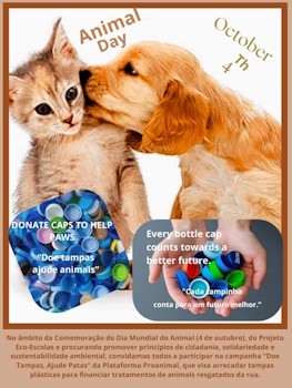 No âmbito do “World Animal Day” (Dia Mundial do Animal), o grupo de Inglês do 1.ºCEB abraçou com entusiasmo a campanha “Doe Tampas, Ajude Patas”, dinamizada pela Plataforma Proanimal.A iniciativa contou com a colaboração dos projetos “Eco-Escolas”, “Abraço Solidário” e “À Descoberta do Meio”, envolvendo crianças do Jardim de Infância, 1.º Ciclo e algumas turmas […]
