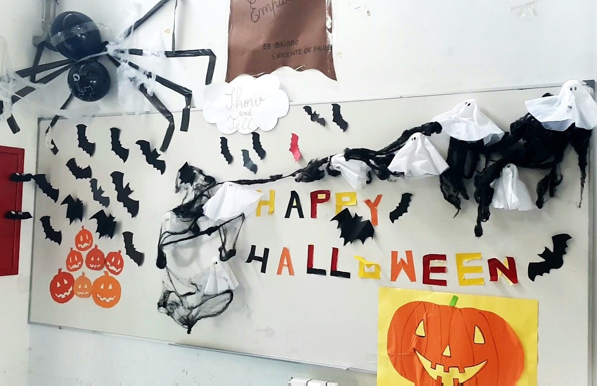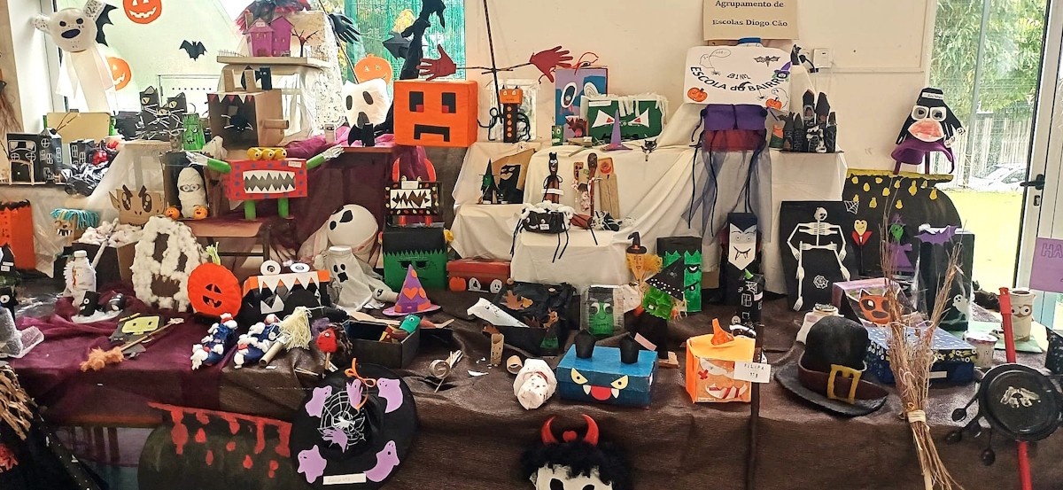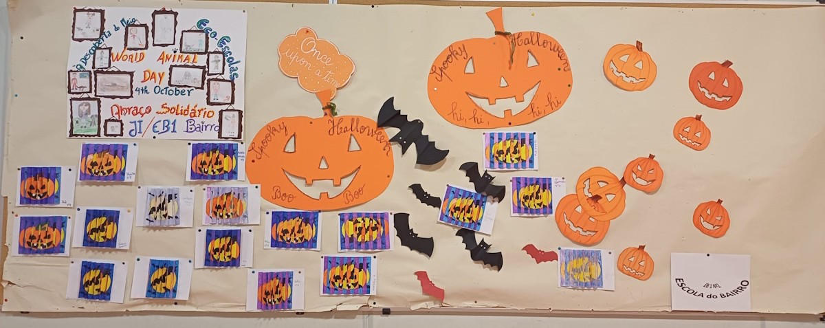 As docentes de inglês do 1º ciclo agradecem a todos os alunos, professores, assistentes operacionais e encarregados de educação pelo entusiasmo e contributos que tornaram possível a celebração do Halloween. As exposições temáticas, os desfiles, as danças, as canções e as leituras nas bibliotecas escolares deram cor, criatividade e alegria a este dia tão especial. Foi um verdadeiro exemplo de colaboração e espírito escolar.
