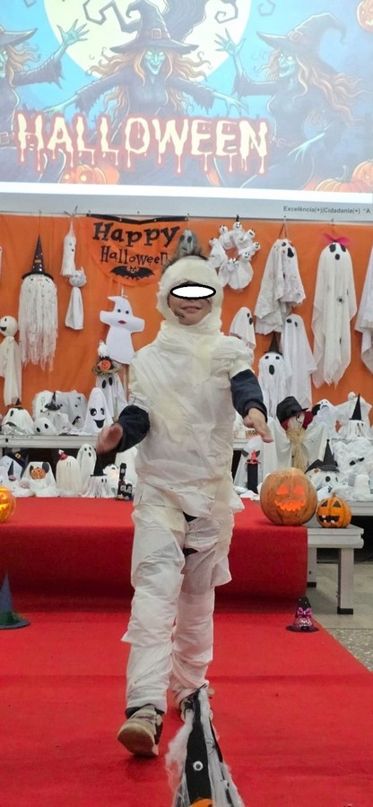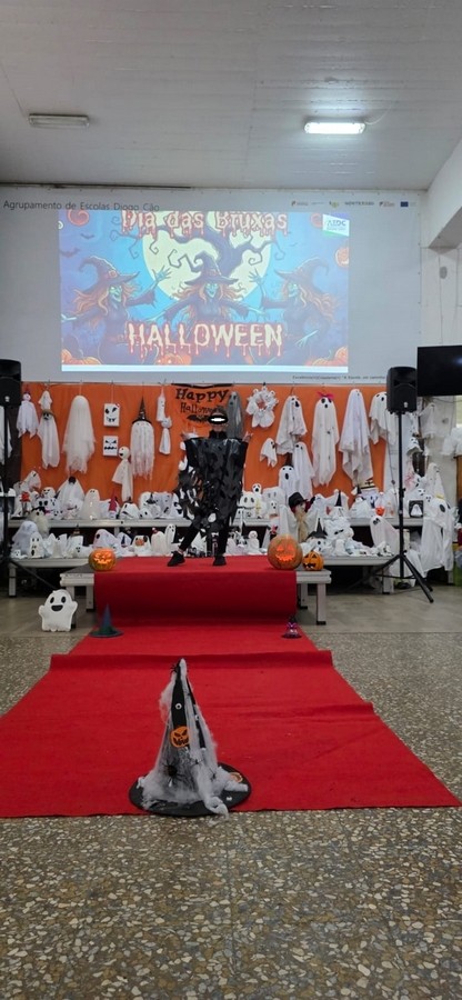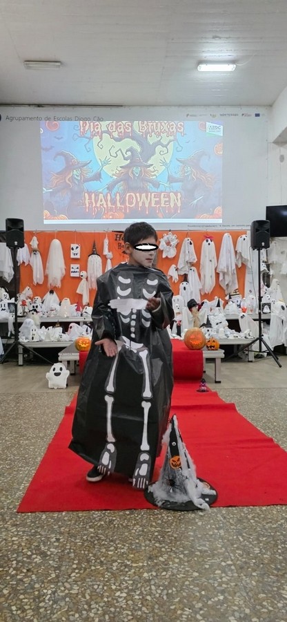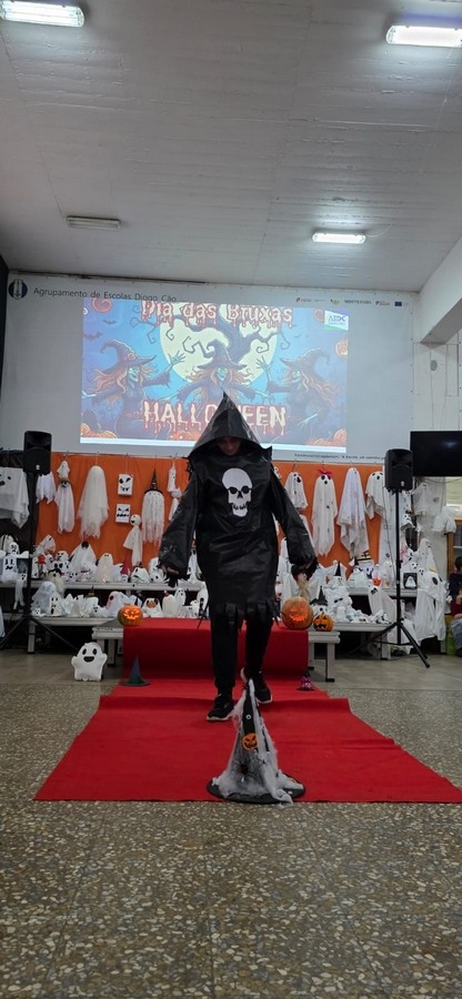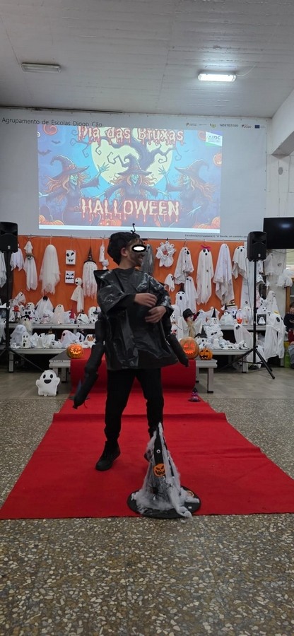 Na Escola EB 2,3 Diogo Cão, no dia 31 de outubro de 2025 – múmia com ligaduras de papel higiénico; esqueleto feito de papel e de plástico; bruxa com vestido de sacos de lixo, um chapéu de cartão e uma vassoura de metal com garrafas plásticas cortadas às tiras; abóbora de cartão, com suspensórios e chapéu de rede plástica; aranhas feitas de sacos plásticos com cortes de teia, garrafas ligadas com metal (representativo das patas da aranha), bola de futebol e metal circular com respetiva aranha em papel usados como chapéus; e a morte com vestido e capuz de sacos plásticos – deram cor e alegria à Escola num desfile de Halloween diferente, que trocou o desperdício por uma mensagem de sustentabilidade e criatividade.