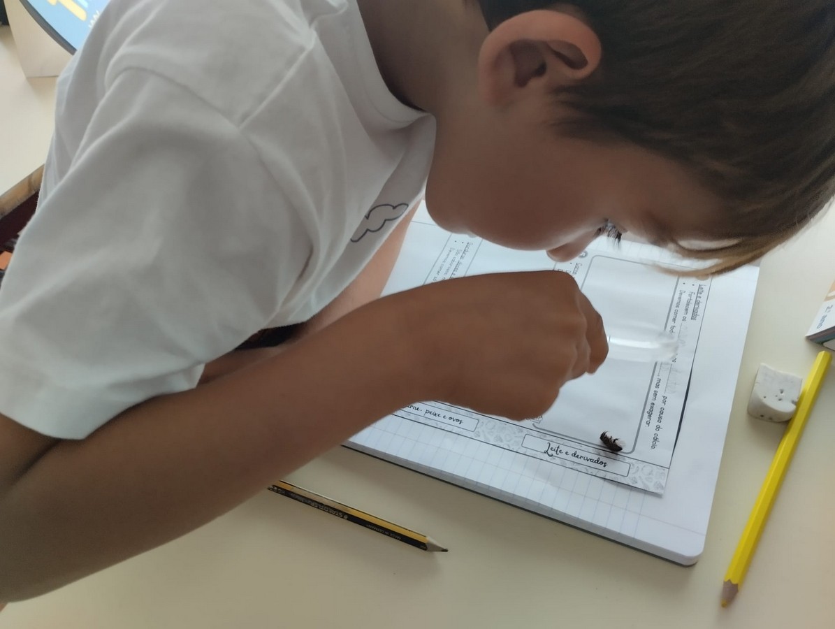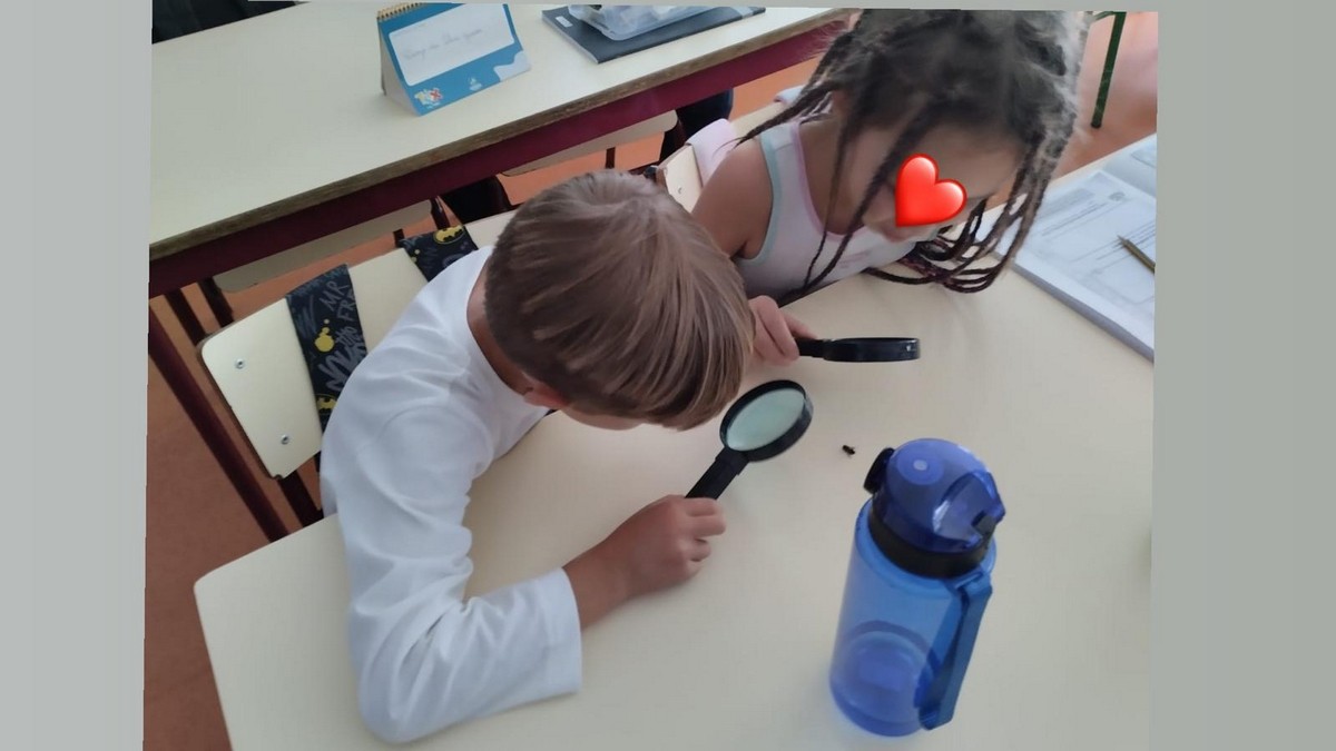 Consigo trouxeram colmeias, fatos de proteção e abelhas mortas, as quais observámos com as nossas lupas.
