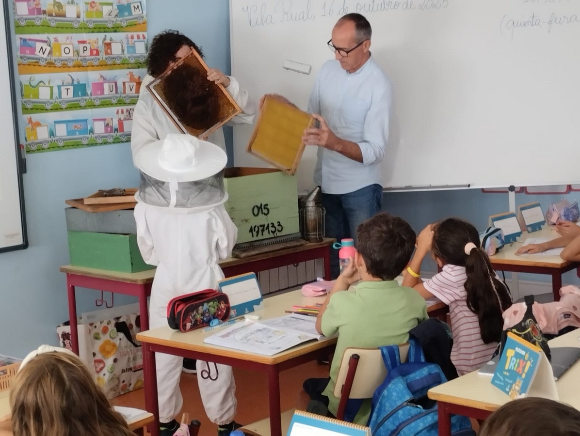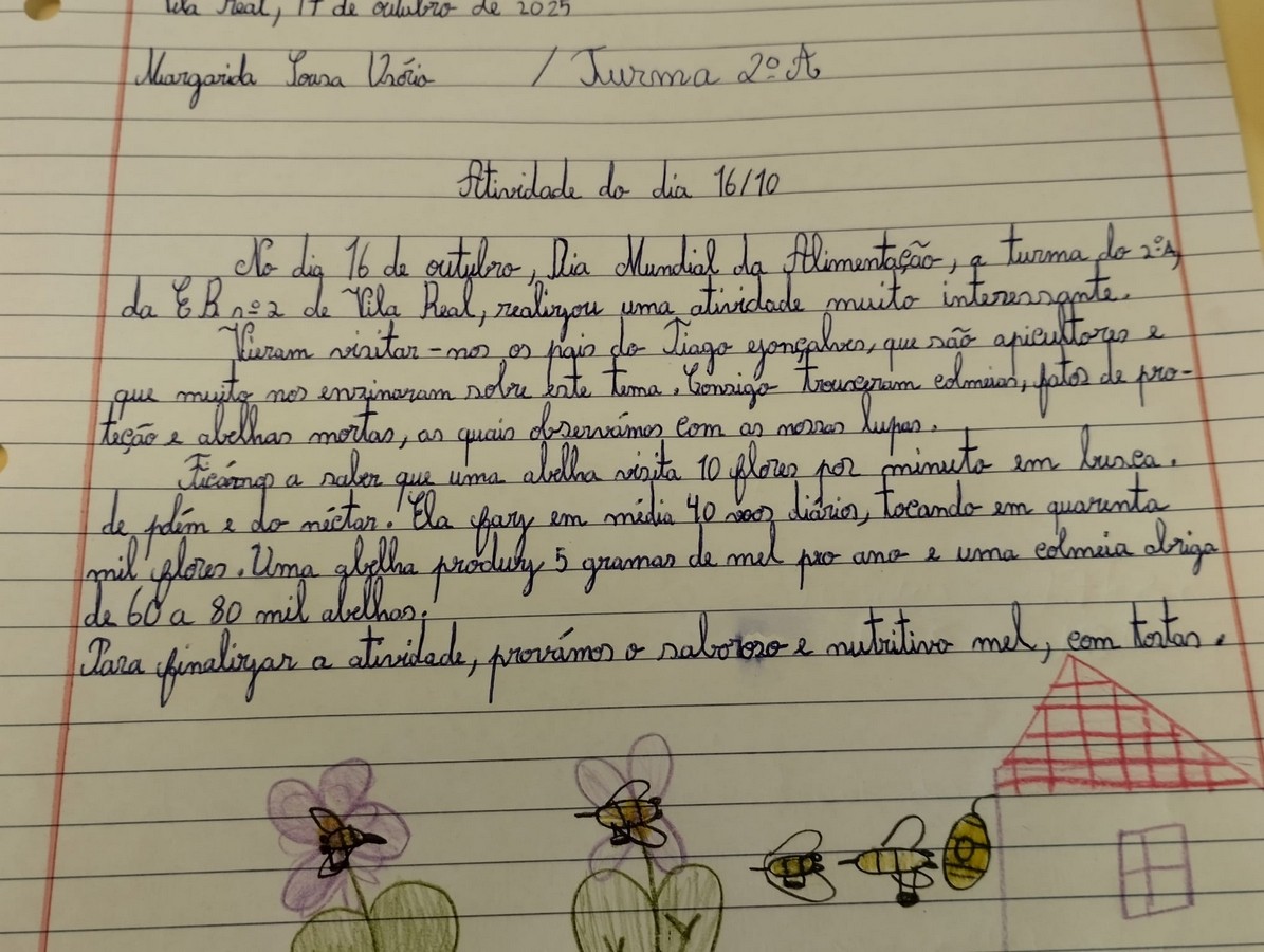 “No Dia Mundial da Alimentação, a turma do 2ºA, da EBnº2 de Vila Real, realizou uma atividade muito interessante. Vieram visitar-nos os pais do Tiago Gonçalves, são apicultores, e muito nos ensinaram sobre este tema.