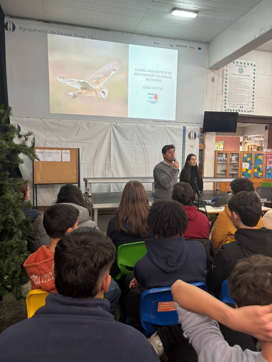 A pedido do Clube das Patinhas e a título de comemoração do Dia Mundial da Conservação da Vida Selvagem (4 de dezembro), esteve a Dra. Luana Monteiro, médica veterinária do serviço de animais exóticos e selvagens do hospital HVUTAD, a divulgar o trabalho realizado pelo Centro de Recuperação de Animais Selvagens. Após a apresentação, que captou a atenção dos nossos alunos, seguiu-se uma sessão de perguntas, consideradas bastante interessantes, pela oradora.