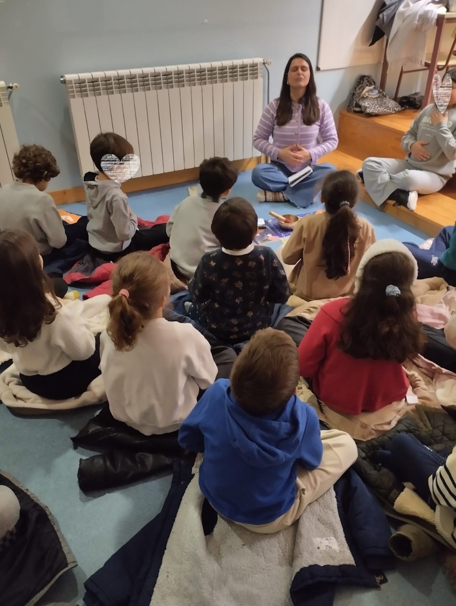 No final usufruímos de um momento de relaxamento, com a D. Mónica a usar a taça tibetana, cujo som e vibração se sente no corpo.