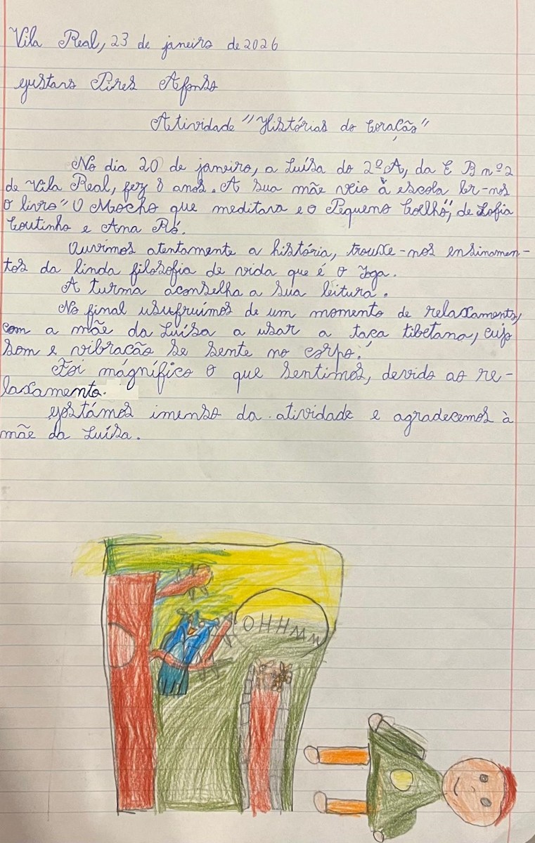 No dia 20 de janeiro, a mãe da Luísa, do 2ºA da EBnº2 de Vila Real, veio à escola ler-nos o livro ” O Mocho que Meditava e o Pequeno Coelho”, de Sofia Coutinho e Ana Ró.