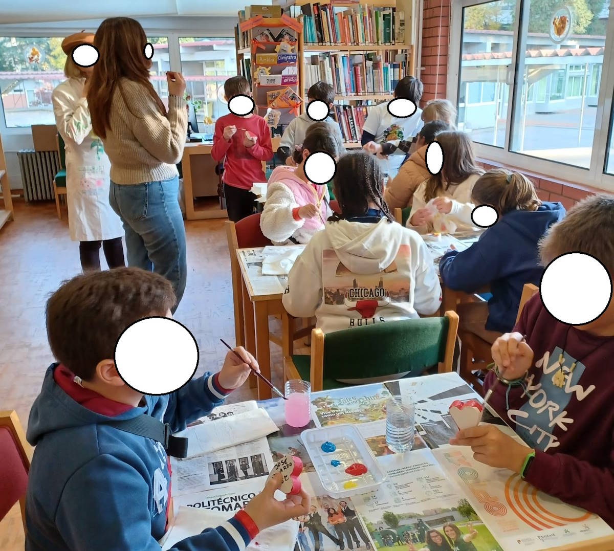 De seguida, os alunos escreveram um pequeno texto de opinião sobre a influência da leitura na escrita e na criatividade, seguido este momento de uma atividade de expressão plástica. Cada um recebeu uma peça de gesso em forma de coração, símbolo de todos os afetos que podemos transmitir e partilhar. Utilizando a técnica de pintura com tintas acrílicas, os alunos pintaram os seus corações com cores variadas, vivas e contrastantes, dando-lhes movimento, luz e personalidade.