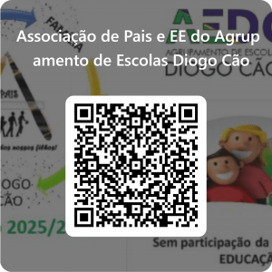 Associação de pais e Encarregados de Educação Contatos (APEEAEDC) Rua Manuel Cardona, 5000-558 Vila RealTelf. (geral): 259 302 460Fax: 259 302 468 Telemóvel: 936 700 698e-mail: apeeae.dcao.vr@gmail.comFacebook: https://www.facebook.com/associacaopais.escolasdiogocao?fref=ts Horário de atendimento Horário de atendimento aos Pais/Encarregados de Educação:3ªs feiras (17h45 às 18h30)Local – Escola Sede Clique para visualizar o formulário ou aceda com o Qr Code