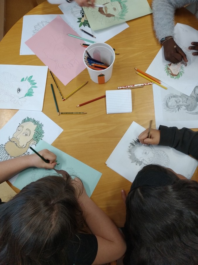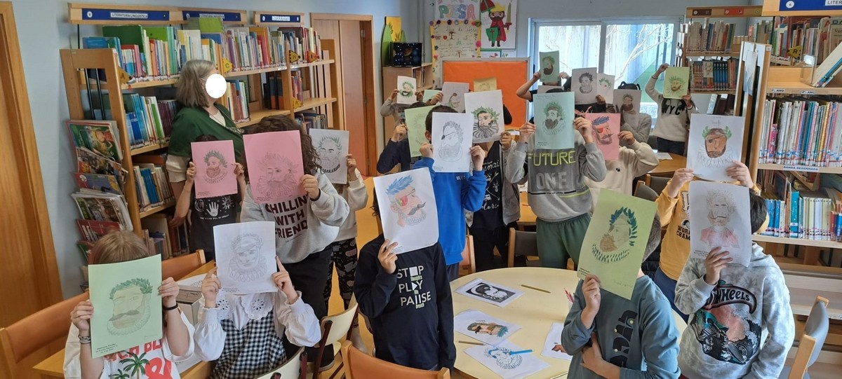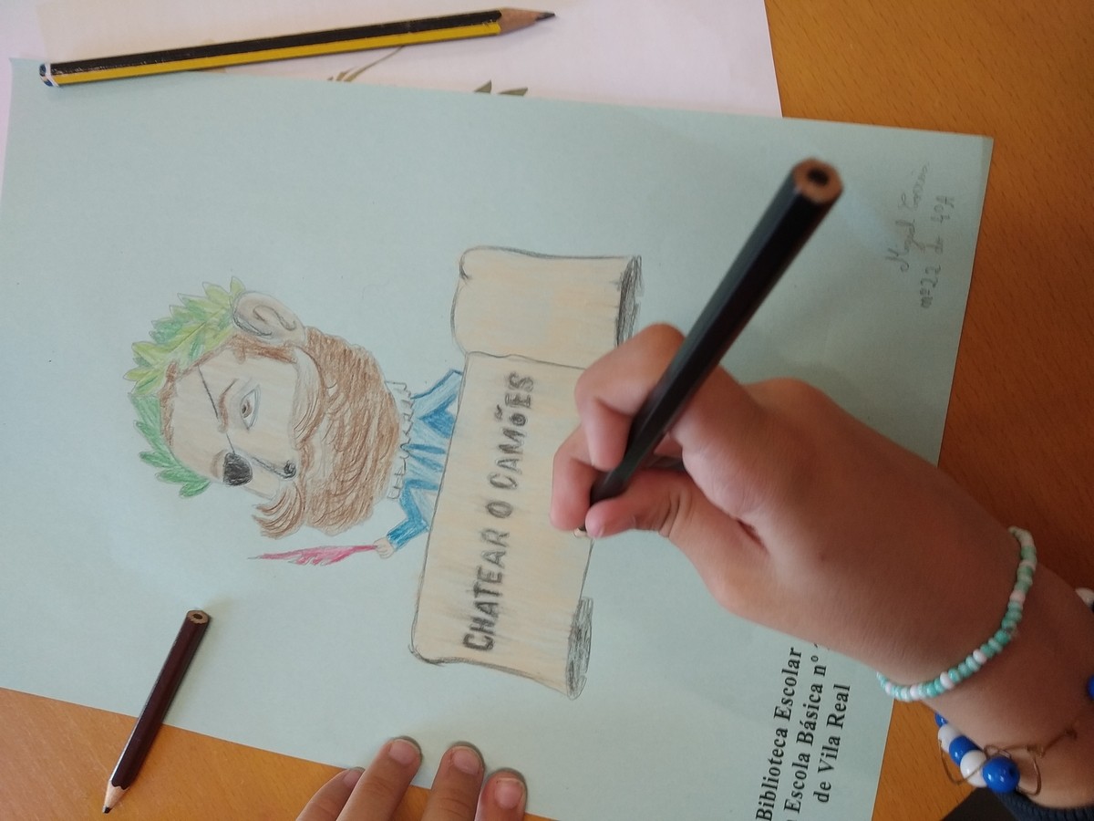 No âmbito das comemorações do V Centenário do nascimento de Luís de Camões, realizaram-se também atividades “Desenhar Camões. Os alunos foram desafiados a “Pintar e desenhar Camões”, a criar retratos e caricaturas de Camões. Com entusiasmo, utilizaram riscadores variados, como lápis de cor, marcadores e lápis de grafite, explorando diferentes formas de expressão artística. A atividade culminou com uma exposição dos trabalhos na Biblioteca Escolar.