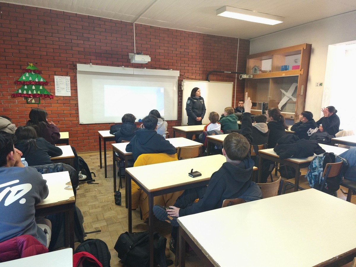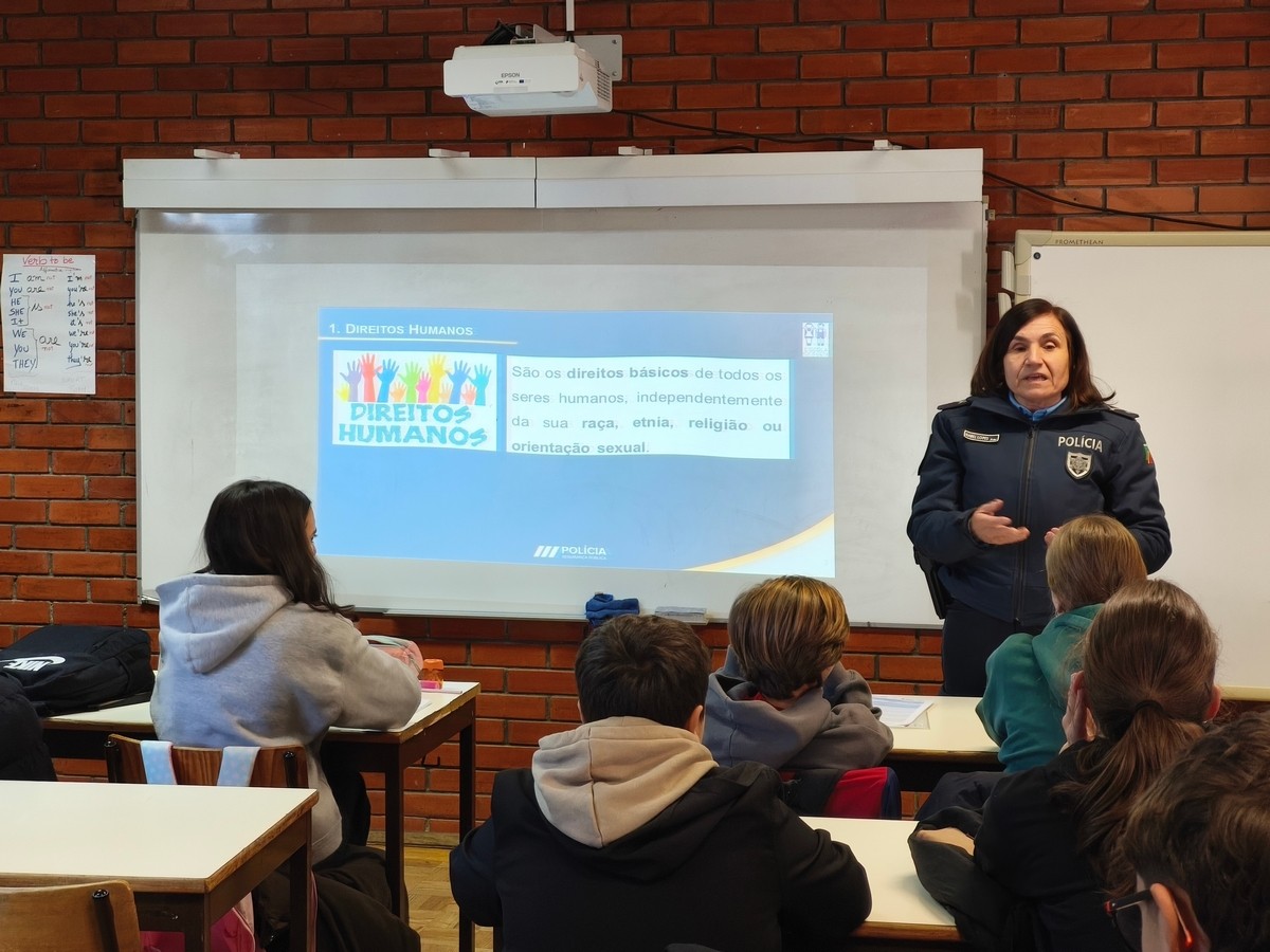 A turma do 7.º B participou, ao longo do 1.º e 2.º períodos, num ciclo de três sessões formativas promovidas pela Polícia de Segurança Pública (PSP), no âmbito da disciplina de Cidadania e Desenvolvimento, sob coordenação da professora Anabela Rego.