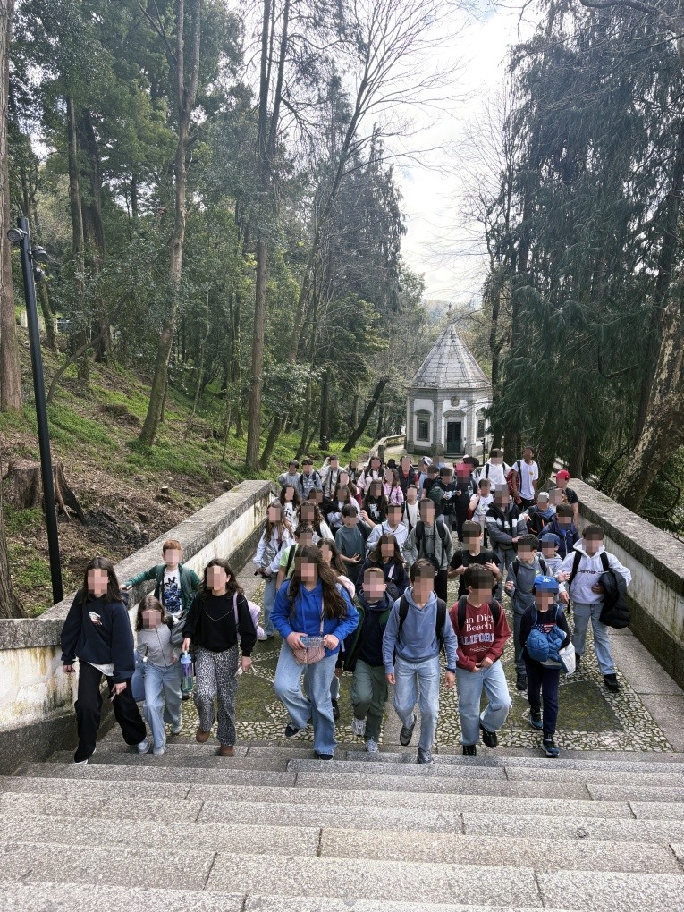 Durante a tarde, a aventura prosseguiu no Santuário do Bom Jesus do Monte, com a subida do icónico escadório. Após o almoço no local, houve ainda tempo para momentos de convívio, descoberta e brincadeira nos jardins do santuário, sem esquecer a visita à Basílica do Bom Jesus, permitindo aos alunos desfrutar plenamente de todo o espaço envolvente.